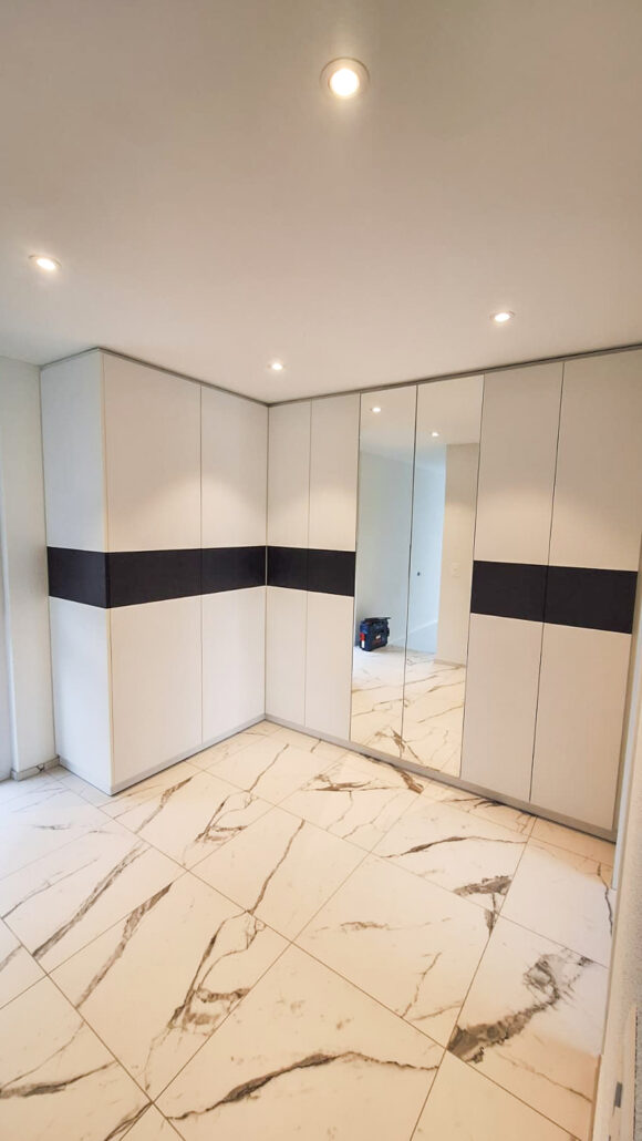 Einbauschränke sind die perfekte Lösung, um jeden Raum optimal zu nutzen und gleichzeitig Stil und Funktionalität zu vereinen. Ob im Schlafzimmer, im Flur oder im Wohnzimmer – maßgefertigte Einbauschränke bieten nicht nur ausreichend Stauraum, sondern fügen sich auch harmonisch in die bestehende Einrichtung ein. Unser Schreiner-Team plant Ihr Einbauschrank, der ganz nach Ihren individuellen Wünschen und Bedürfnissen gefertigt wird. Wir legen großen Wert auf Qualität und Handwerkskunst, damit Sie ein Möbelstück erhalten, das sowohl langlebig als auch ästhetisch ansprechend ist. Um sicherzustellen, dass der Einbauschrank perfekt in Ihren Raum passt, bieten wir einen Ausmesstermin vor Ort an. Dabei nehmen wir uns Zeit, um gemeinsam mit Ihnen Ihre Vorstellungen zu besprechen und alle notwendigen Maße genau zu erfassen. So können wir Ihnen ein maßgeschneidertes Angebot erstellen, das genau auf Ihre Wünsche abgestimmt ist.